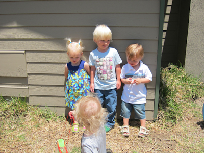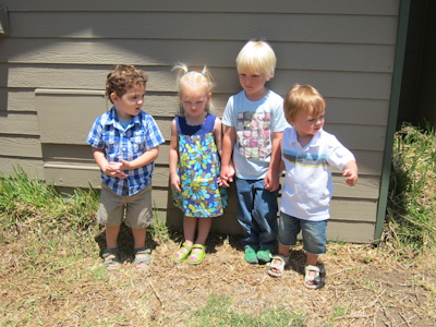 Now at this point, Theo and Phoebe had a toy-hogging thing going on, and by toy-hogging I mean Theo being a toy hog. Usually they play well together, but anyway, when we lined up for  freight train, Phoebe took the opportunity to grab the bug collecting box from Theo and then refused to give it back. Tears were involved.