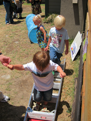 I’m not really sure where Vivienne was. I think she kind of flipped out or something. And I say that in a loving way. Anyway, the kids carefully traversed the course.