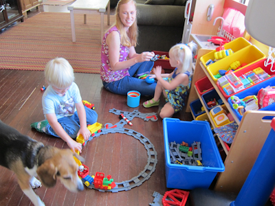 Anderson immediately went for the train. Annika went for the kitchen. I should have had her do the fruit.
