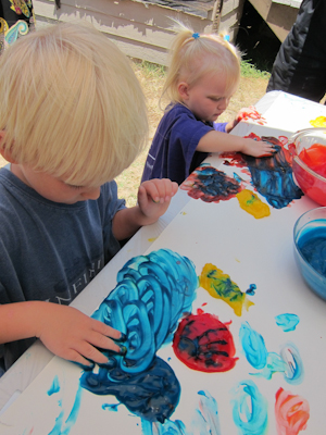 For paint, I used vanilla pudding and food coloring. It actually worked really well, except since the pudding was a bit yellowish, I had to add an inordinate amount of blue dye to the blue bowl.