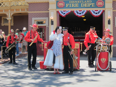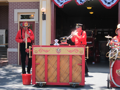 Five adorable fire fighters in oldey timey costumes! I particularly loved the drummer, as his instrument looked like it was made from different fire equipment.