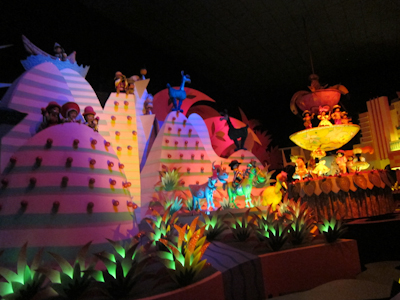 And I have to say, of all of the rides repeated at Walt Disney World, the Small World there left me shocked and speechless, it was so bad. The rooms were jumbled and crowded, nobody was singing in their languages (or singing at all, I think they had the music turned way down), it was impossible to tell where in the world you were at any given time. As far as Small World goes, the original is DEFINITELY the best.