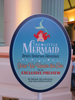 In the meantime, Disney opened up a new ride–The Little Mermaid. It’s like a regular dark ride, but better! Because it’s new! It officially opens on June 3rd but like Star Tours (which also opens on June 3rd), they are holding Annual Passholder previews and today we went to one of them. Unlike Star Tours, you didn’t need a special winning email to get in line. Anyone with an annual pass could do it. So we did.