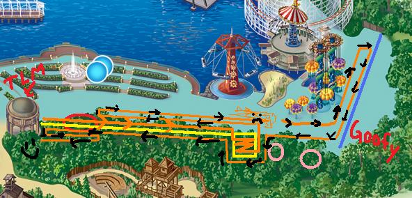 This is where Theo got all antsy and Kevin jumped out of line with him to take a walk around. Anyway, in case you wanted to get back to the maps again, the black arrows trace that last part.