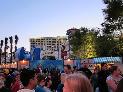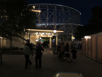 Behind that long wall on the right is Goofy’s Sky School, formerly known as a Mulholland (I think) themed roller coaster. I’m not sure what’s taking them so long to open it, as I think they aren’t making any real changes to the ride. They were running test cars tonight.