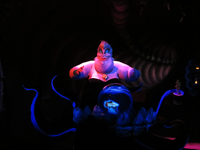 Following that, you approach Ursula’s Lair. I think this is one of the best parts of the ride. The animatronic Ursula is really well-done, and her crystal ball has moving images of Ariel, et al.
