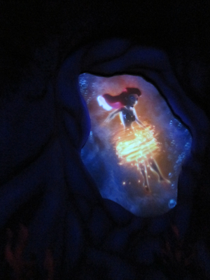 Then you look up and you see Ariel swimming around above you. This is on a screen but looks super cool.