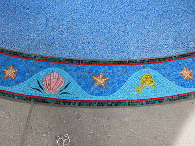 In addition to there being seashells in the sidewalk, there’s also some cool mosaic tiles