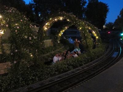There’s quite a bit of decorative foliage, like the ride name in flowers. You also go through a lovely floral display representing the Silly Symphonies, and talk about something quite possibly lost on the next generation. I’ll have to track that down.