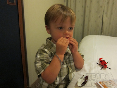 Was I talking about kid amenities? Can’t remember. Anyway, another nice thing is the Wave Phones in each room. They are basically onboard cell phones and there are two of them. You can send one off with the kids and keep one for yourself and stay in touch whenever you’re separated. It’s very cool and I would imagine extremely handy for families with older kids, though we did use it when we had Theo in Flounder’s Reef Nursery.