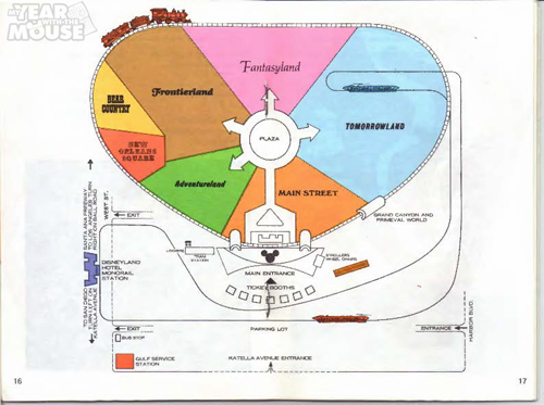 While nowadays you just have the giant foldout map, I think there’s something kind of cute about a color-coded guide to the park. I mean really, the park isn’t THAT big or hard to get around. Particularly because, most notably on this map, there are no guides to the actual walking paths between lands. So you can have several pages of maps and still just wander around from one land to another. I do love the instructions when you exit the parking lot onto West Street–go left then left for San Diego, go right then right for Los Angeles. And incidentally, anyone non-local know what that section of West Street is now called?