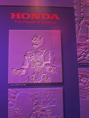 On the other side of Honda’s Asimo theater, people come out and they look all blue. This is Disney’s way of letting you know that you’re in the future.
