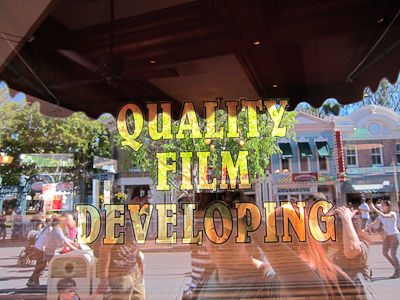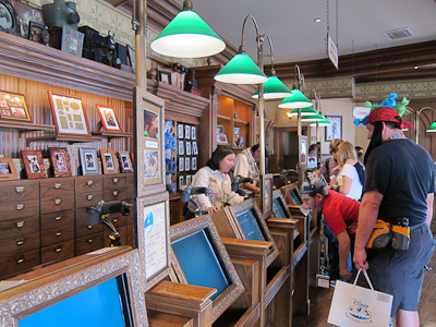 In keeping with the oldey-timey theme of Main Street, the Photo Supply Co. has cool window displays.