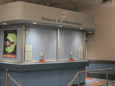 You’re about to take a taxi through Monstropolis, so be sure to follow the signs for tickets and departures.