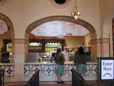 Clarabelle’s is part of the larger Elysian Arcade on the West side of Buena Vista Street. It’s got a nice little rest spot outside.