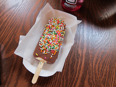 And one thing I particularly love–hand-dipped ice cream bars! You can get a variety of topping, but I went with the traditional sprinkles.