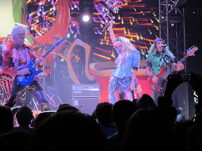 And the stage and band, of course, are a highlight. It’s Alice and all of her friends, except dressed in funky neon rocker clothes.