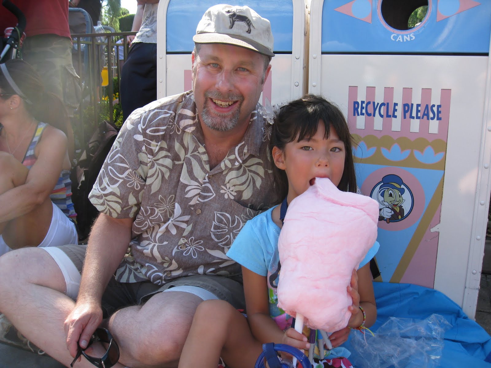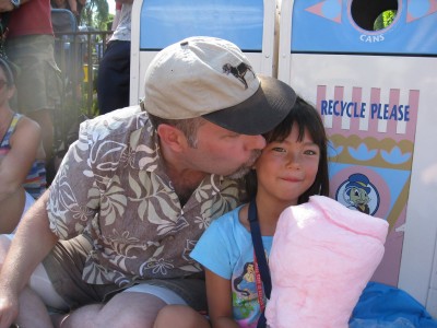 Prior to writing this blog, I had never watched a daytime parade, and neither had Wendy (incidentally, Wendy also grew up in Southern California so she’s been to Disneyland many times–we’ve even gone together). I was always too busy getting to my favorite rides to waste time on something like the parade. Well, after reading MYWTM posts about Soundsational (another post with a video here), Wendy decided that they would, gosh darn it, sit down, relax, and watch the parade. Sadie got bribed with cotton candy.