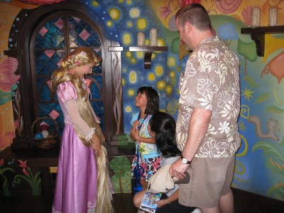 Sadie was hyper-focused on the fairies, though, and she couldn’t wait to get into Pixie Hollow (post coming up), so she was less impressed by finding these princesses than Wendy was.