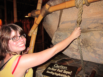 Down on the ground there are two “rooms.” The Robinsons used them for the kitchen and library, but it’s hard to tell what Tarzan and Jane use them for. There is a bamboo microphone-looking thing that says “Yell in here,” but my friend Rachel tried it and didn’t really get anything out of it. Maybe a crude intercom?