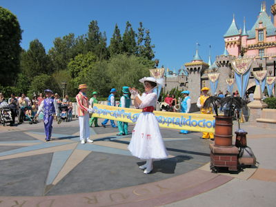 There were more musical numbers, and then Bert revealed that his “trash can” was actually a cleverly-disguised banner holder/retractor, reading Supercalifragilisticexpialidocious.