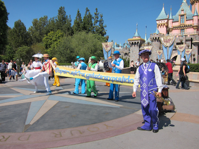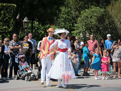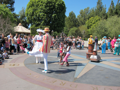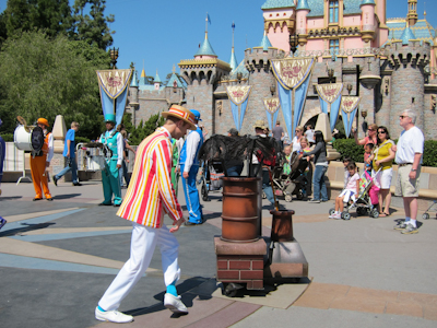 If you’ve been following this blog, you’ll know that 3 minutes on Google is my standard at-home research methodology (if you’re new to the blog, my standard at-home research methodology is 3 minutes on Google), and according to my research, the Pearly band follows the traditions of London’s pearly kings and queens. I have no idea what that’s supposed to mean, since I’ve been to London a couple of times and I have NEVER seen any royalty dressed up like this playing instruments. But, you know, it’s Disneyland, so I’ll go with that. Apparently the “pearly” part refers to the mother-of-pearl buttons on their natty outfits.