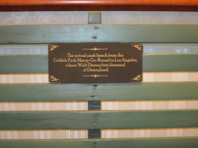If you know anything about the history of Disneyland, you know that Walt used to love spending time with his daughters at Griffith Park in Los Angeles, and it was there that he dreamed of a family park. One without, presumably, litter all over the ground. Now over by the Disney Gallery, there’s a bench.