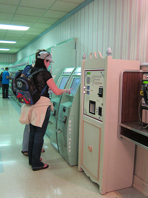 We peeked into the “barn” but there was no equipment like I saw when I was almost on Oprah. There was a big zig zagging line and a large screen showing Mickey cartoons after which you get to meet Mickey and get a picture. However, at that point the kids were antsy (and we were still missing one of them) so we decided to pass.