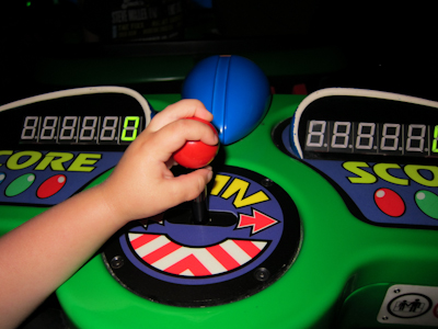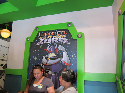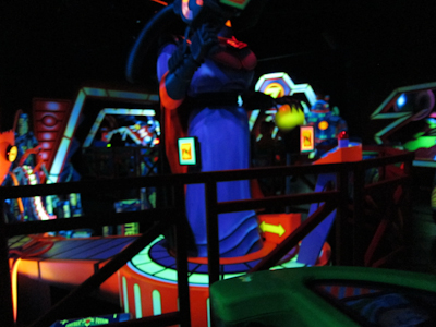 As you can see (or as you could see if I were a decent photographer), there’s a couple of moderately-easy square targets and a difficult triange behind Zurg’s arm. It’s difficult because it can only be hit from a certain angle, and Zurg’s arm goes up and down, periodically blocking it.