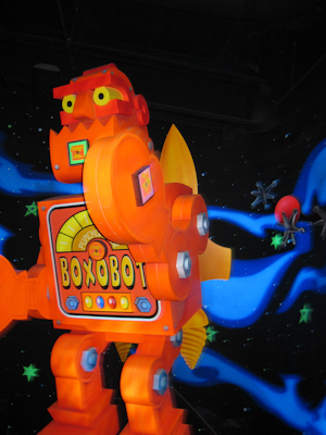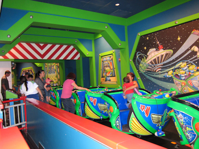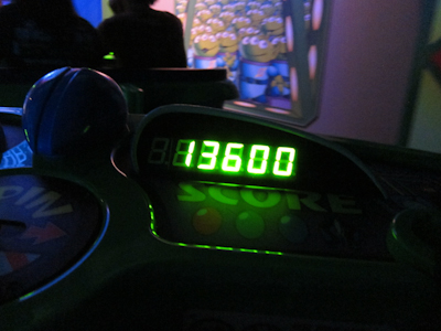 Oh, also, the one thing I don’t like about this ride is that you can’t really see where you’re shooting. The pictures all show these laser beams coming out of the blasters, but in reality, you just have a little red dot that shows up when you pull the trigger. The other problem with that is that you see everyone else’s red dots too, so if you’re me and lousy at the game, it’s very difficult to know which dot is yours, making it difficult to aim.