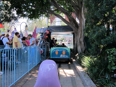 Way in the back of the park past Small World is a little land called Toontown. Toontown is the home of the classic Disney characters (Mickey, et al.) as well as the lamest ride in the whole park, Roger Rabbit’s Car Toon Spin.