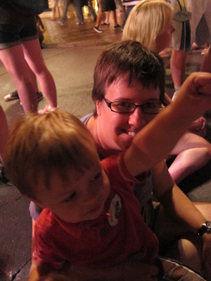 Theo seemed to like the fireworks this year. He didn’t really smile, but he did emit a series of increasingly ecstatic “wow…Wow…WOW!!!”s over the course of the show. He also spent the entire show with his hand out. I don’t know if he was trying to touch the lights or catch the lights or shield himself from the lights, but it was pretty cute.