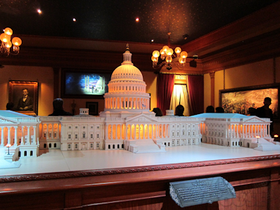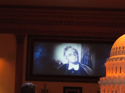 So once you’re done being either inspired or creeped out by Mr. Lincoln, you go through a couple of rooms I like to call the aftershow. Artwork adorns the walls with plaques reading “Spirit of [admirable quality]”